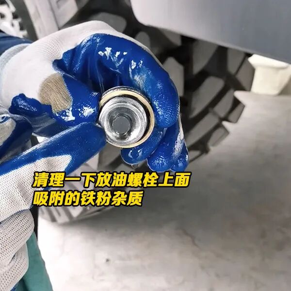 清理一下放油螺栓上面吸附的铁粉杂质,再装回放油螺栓。