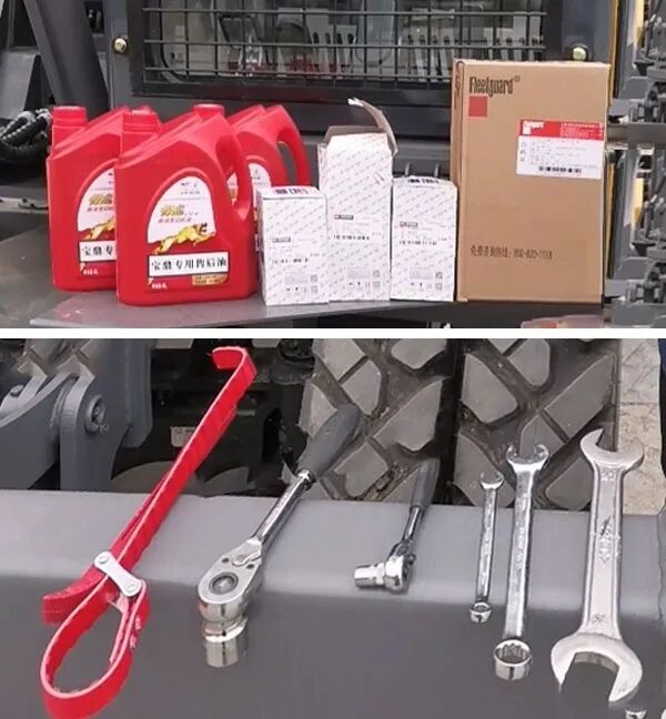 工具:滤芯扳手、M27套筒、M10套筒、M10开口扳手、M18开口扳手,M27开口扳手、盛放废机油的桶。